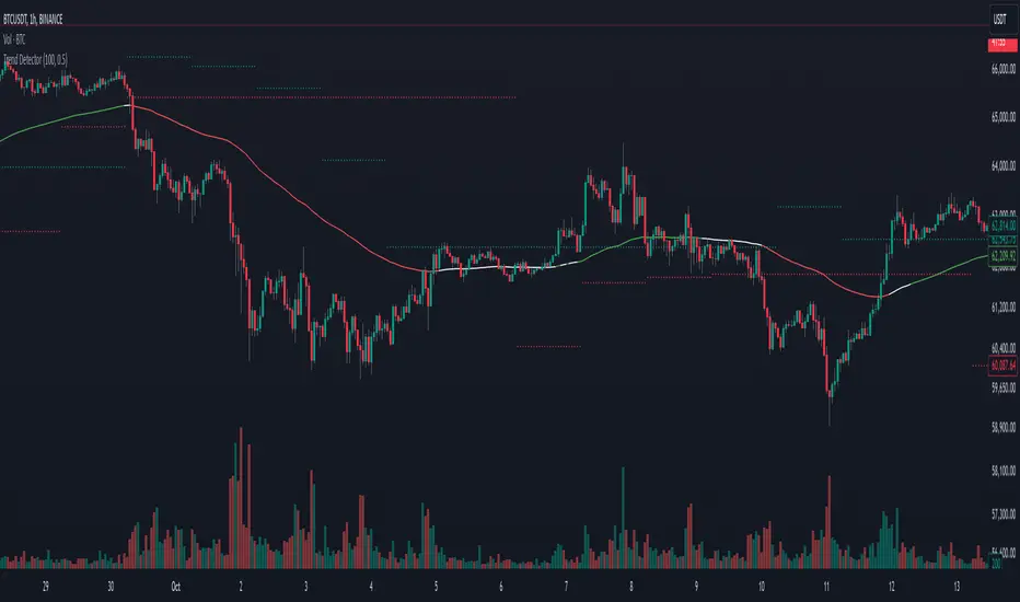 An automatic tool for identifying market states, displayed through EMA colors: green for uptrends, red for downtrends, and white for sideways markets.