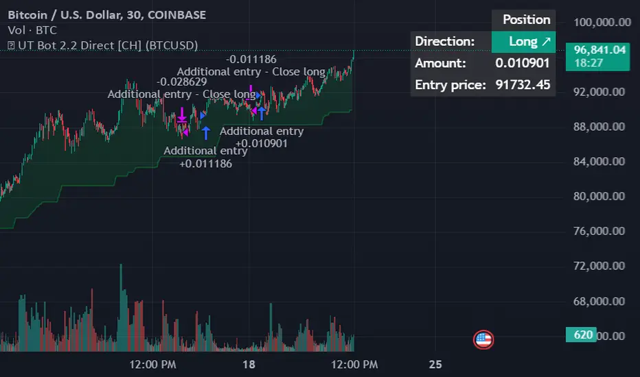 UT Bot 2.2 Scalp [Cryptohopper] is an advanced strategy designed to bridge the powerful analytics of Tradingview with the automation capabilities of Cryptohopper via API integration. This tool enables precise, real-time trade execution, making it ideal for traders looking to streamline their processes and capitalize on market opportunities efficiently.