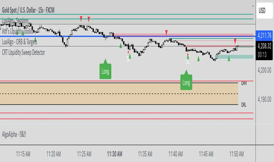 The CRT Liquidity Sweep Detector is a precision indicator designed for traders who follow ICT (Inner Circle Trader) methodology and Candle Range Theory (CRT) concepts. This tool automatically identifies high-probability manipulation patterns where institutional players sweep liquidity before reversing price direction.