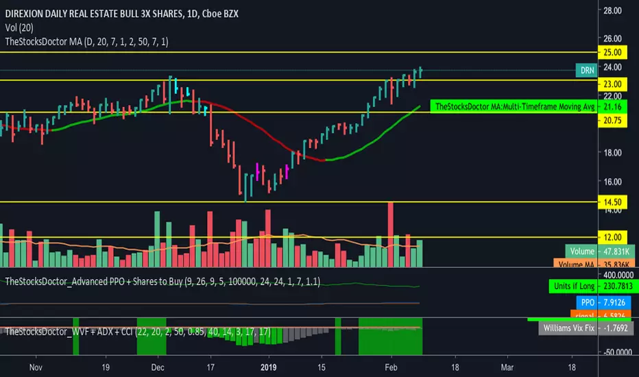This script is a modified version of CM Williams Vix Fix for which I have added an indicator that shows when ADX and CCI are both indicating positive momentum - highlighted by green bars. This is part of TheStocksDoctor Trading System.
