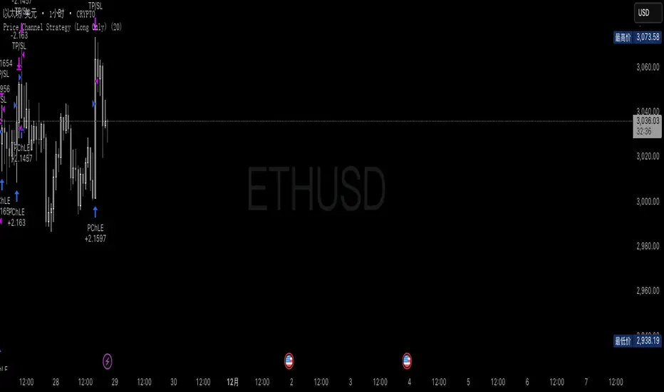 When the current price breaks above this 20-period high, a stop entry is used to initiate a long position.