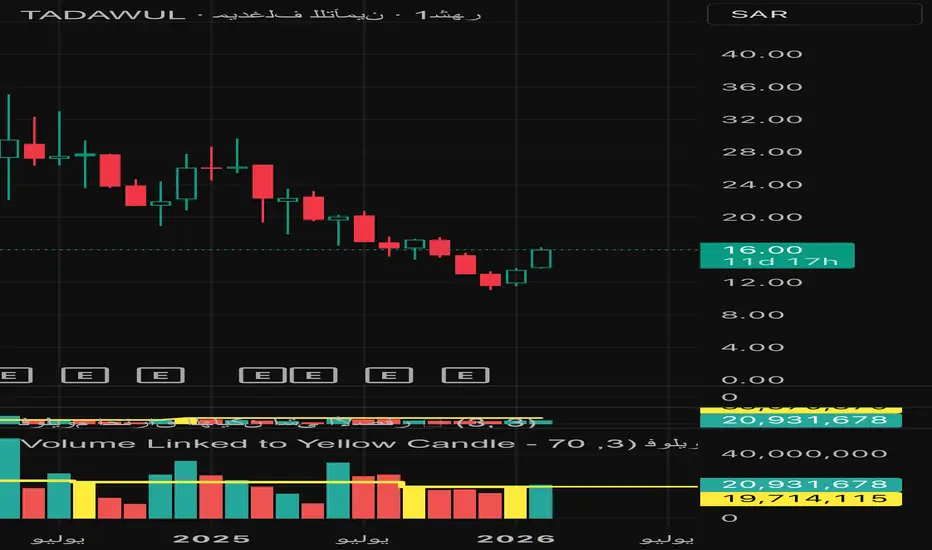 The script monitors the relationship between price, its Simple Moving Average (SMA), and momentum. When a specific "Yellow Candle" setup occurs on the price chart (Price crossing over SMA with moderate momentum), this volume script highlights the corresponding volume bar in a distinct color (Yellow).