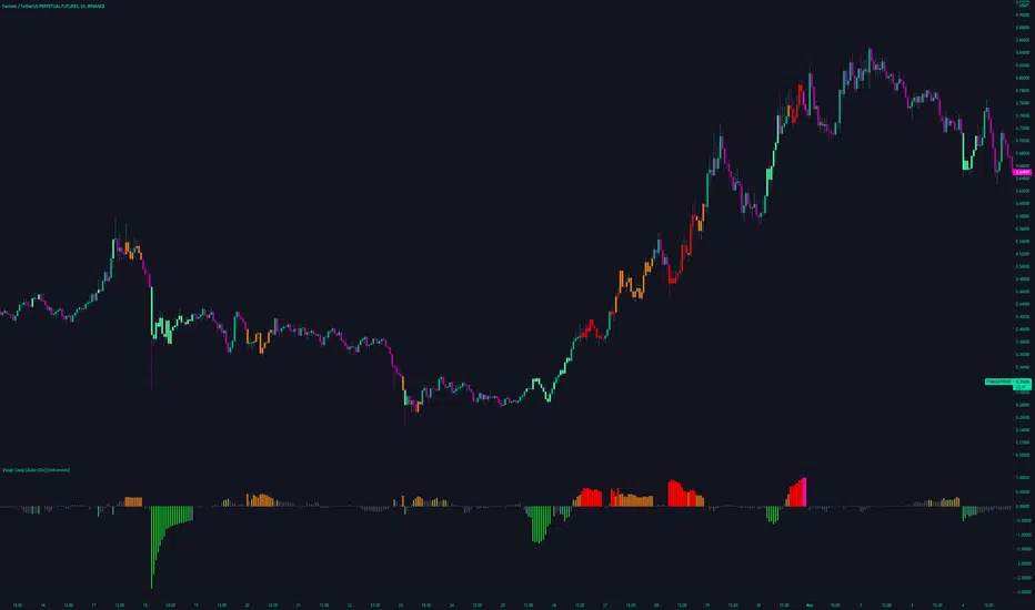I made this due to the volume discrepancies between the derivative and spot markets.When the oscillator is below zero, the perpetual vwap is below the spot vwap, if it's above, the perpetual vwap is above the spot vwap.