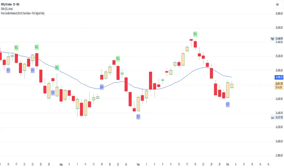 Prev Candle Breakout (Strict Close Basis - First Signal Only)