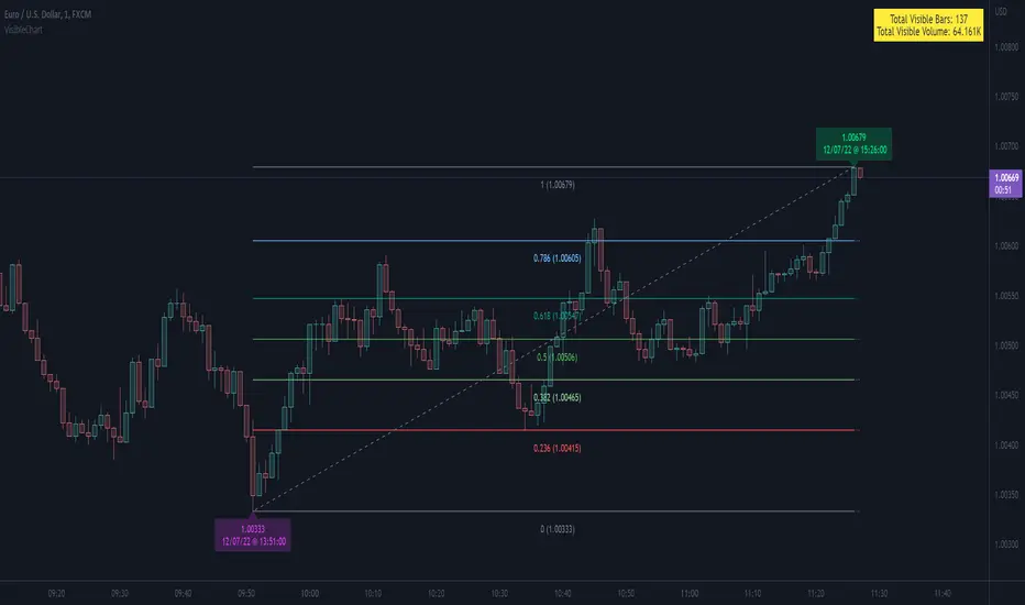 This is now possible in Pine Script™ thanks to the recently-released chart.left_visible_bar_time and chart.right_visible_bar_time built-ins, which return the opening time of the leftmost and rightmost bars on the chart. These values update as traders scroll or zoom their charts, which gives way to a class of indicators that can dynamically recalculate and draw visuals on visible bars only, as users scroll or zoom their charts. We hope this library's functions help you make the most of the world of possibilities these new built-ins provide for Pine scripts.