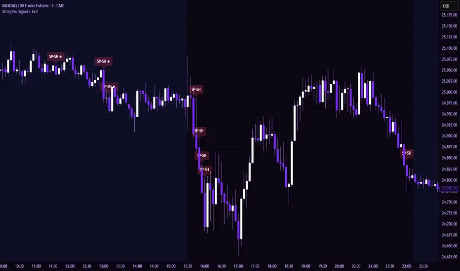 StratyPro is an intraday market-flow framework built around liquidity behavior, session timing and structural shifts. Instead of combining public indicators, StratyPro uses its own unified engine that monitors:
