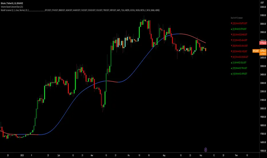 -Screener shows the information about the color changes of MavilimW Moving Average with default settings (as explained in the Short-Term Example section).