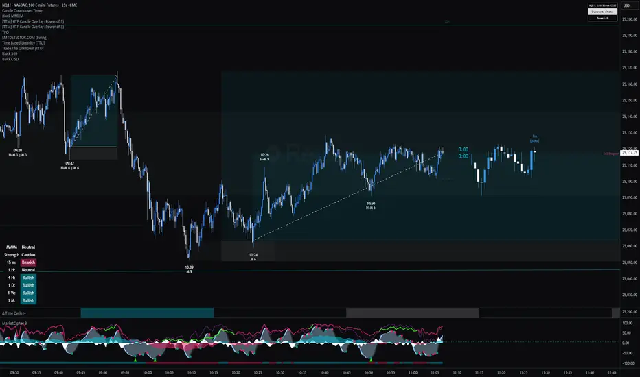 Purpose: keep you aligned with intraday order flow (MMXM) while avoiding getting steamrolled by higher-TF shifts. Trade pullbacks with the tide; stand down when structure flips against you.