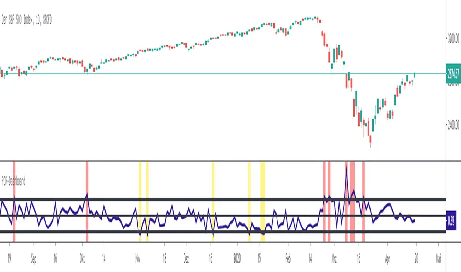 Das Put / Call-Verhältnis wird als Gegenindikator verwendet, um bullische und bärische Extreme zu messen. Ich benutze es in Kombination mit anderen Indikatoren als Frühwarnsystem für größere Trendumkehrungen.