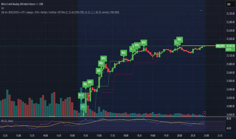 // Visual tools (labels, sweep lines, IFVG boxes, midline) assist
