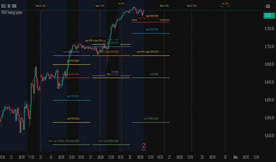 This script allows you to track both price and time levels defined according to the PDVR Trading System.Price Levels