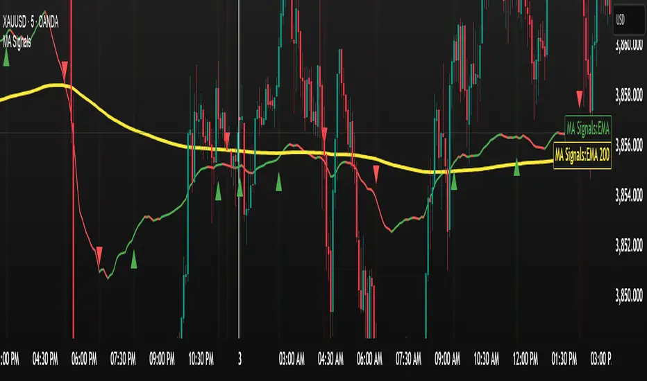 - ✓ Different line thicknesses (EMA: thick, SMA: thin)