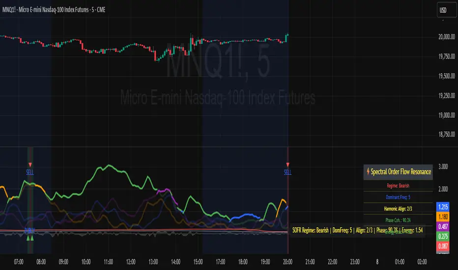 The Spectral Order Flow Resonance (SOFR) is a next-generation tool for traders who want to go beyond price and volume, tapping into the underlying “frequency signature” of order flow itself. Instead of chasing lagging signals or reacting to surface-level volatility, SOFR lets you visualize and quantify the real-time resonance of market activity—helping you spot when the crowd is in sync, and when the regime is about to shift.