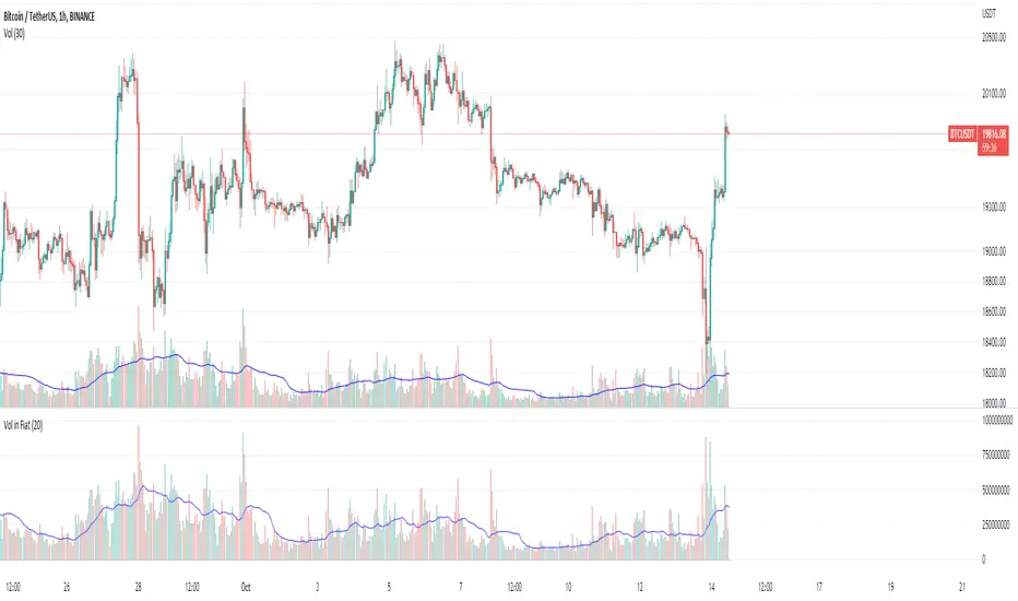 This indicator is modified from veryevilone's BTC Volume in Fiat. Modified color and style, and bumped Pine language Version.