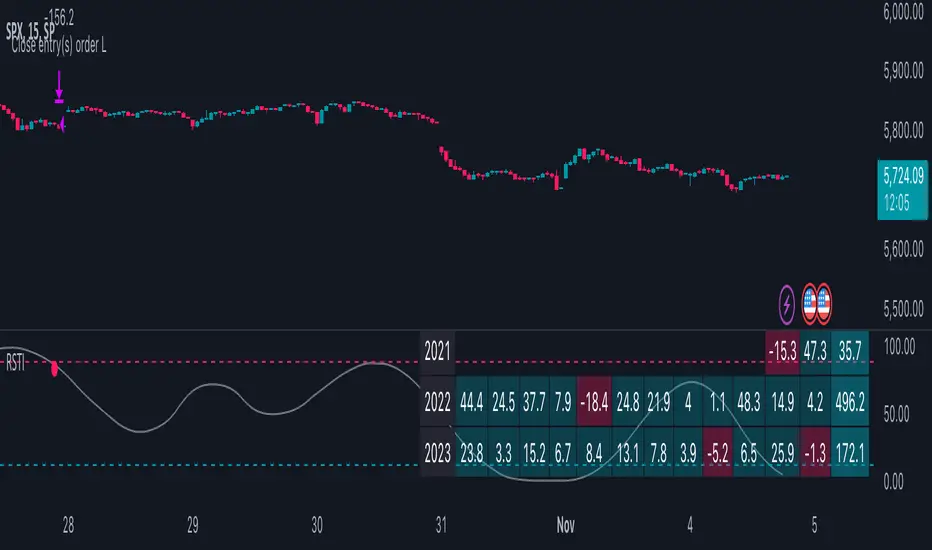 It checks the relative strength (RSI) of the current symbol (SPX) and works like an oscillator. Additional indicators provide even better entries and exits.