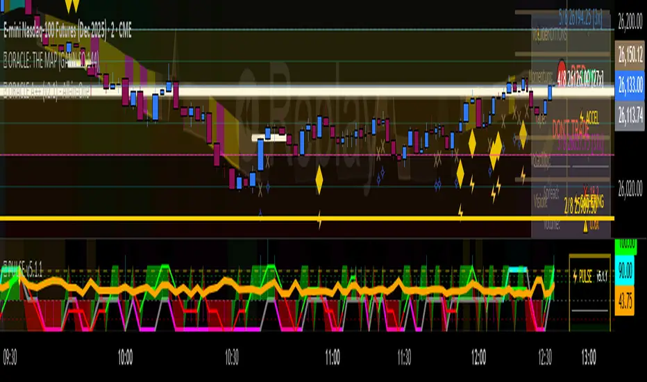 PULSE is the "brains" and decision-support engine of The Oracle system. It doesn't create signals; it validates them. It acts as your quantitative co-pilot, analyzing every setup in real-time and assigning it a Confluence Score from 0-100.