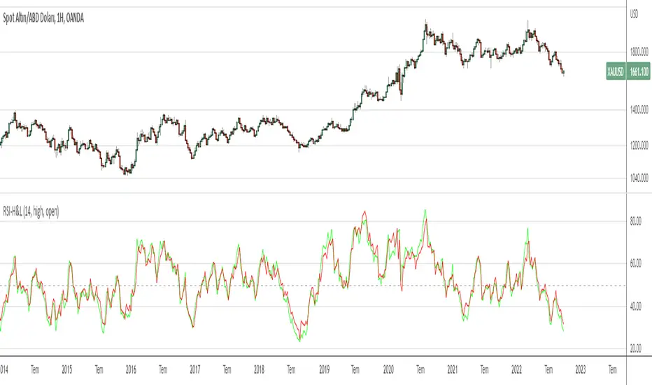 RSI genellikle mum kapanışlarına göre kullanılıyor ama bazen alım satım yaparken en dip ve en tepeleri yakalamak istersek kapanışlara değil de bu en yüksek ve en düşük mum değerlerine ihtiyacımız oluyor. Bu nedenle bu kod yazılmıştır.