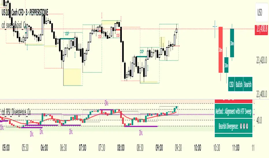 This oscillator is designed as an additional confirmation tool for strategies based on HTF sweep + LTF CISD/CHOCH confirmation logic. The chosen HTF in the oscillator should match the time frame where sweeps are expected.
