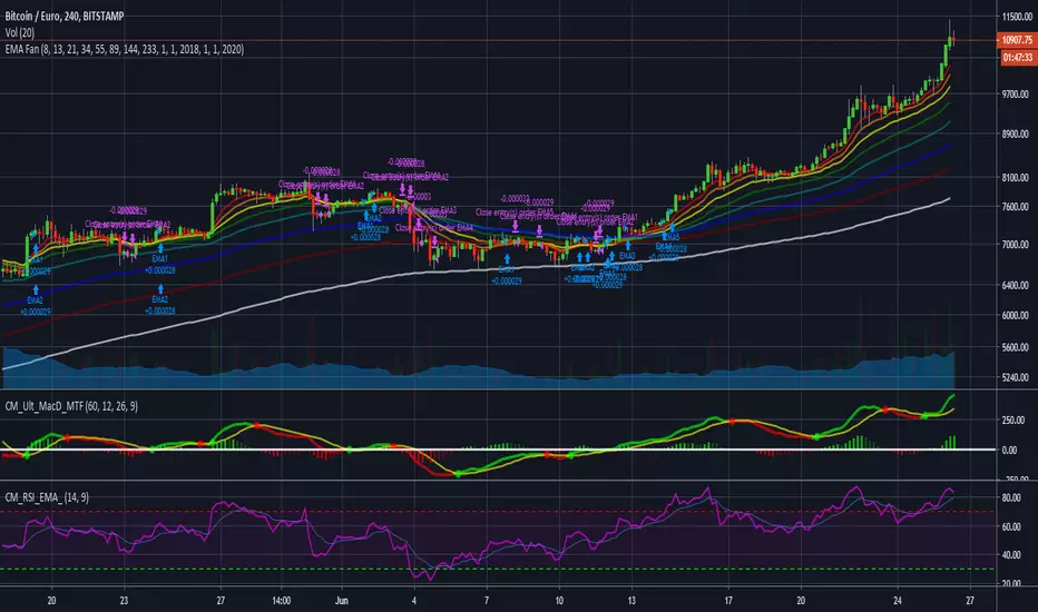 A bot that gradually buys or sells into the market depending on how much the EMAs fan out.