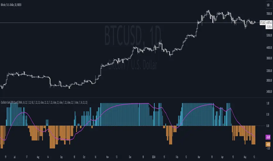 Oscillator Suite calculates signals for each selected oscillator based on its specific formula, offering a diverse range of market insights. Whether you're assessing trend strength, market momentum, or price movements, this indicator has you covered.