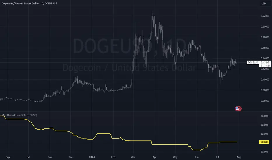To measure DOGE's drawdown in USD, set DOGEUSD in the main panel, leaving the "Use Benchmark" box unchecked.