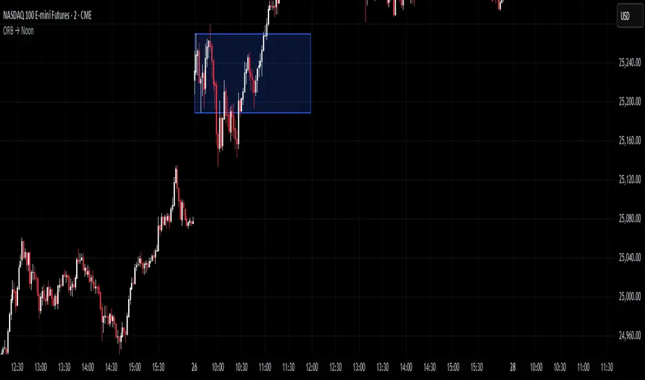 Marks out ORB box and extends it from 9:30 low to 9:45 am high and then extends ORB box until noon.