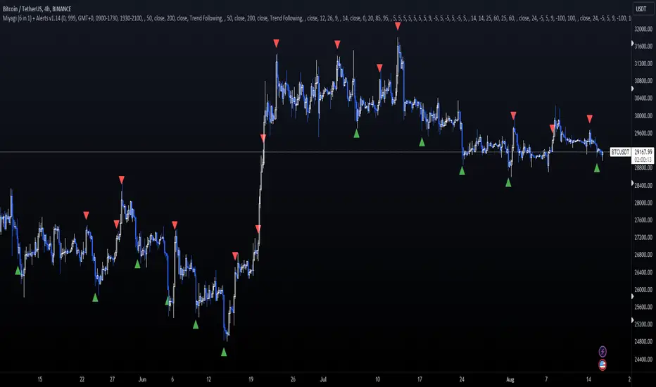 Miyagi indicators combine multiple trigger conditions and place them in one toolbox for traders to easily use, produce alerts, backtest, reduce risk and increase profitability.