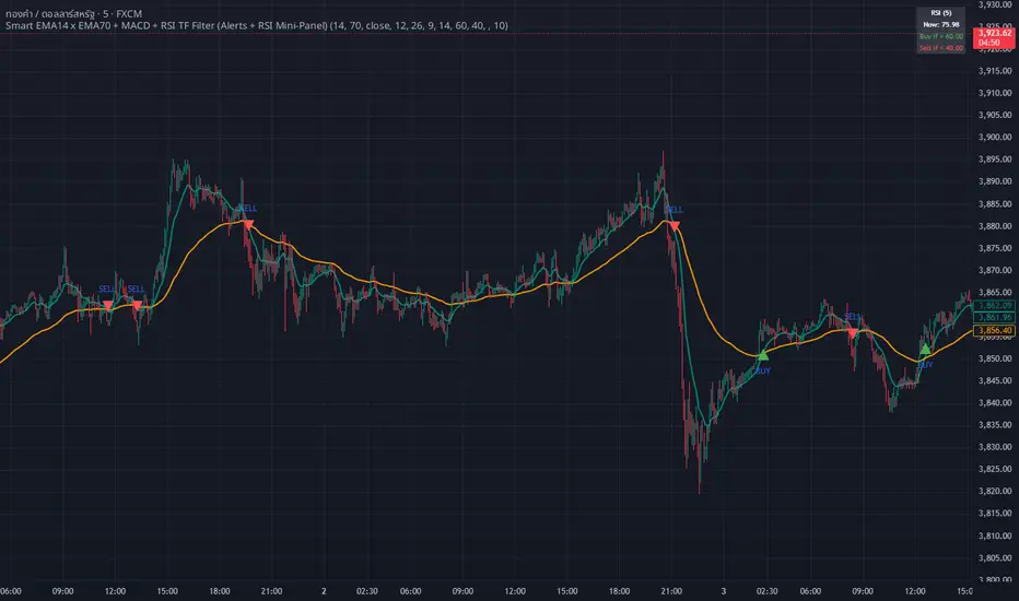 📈 Buy Signal: EMA14 crosses above EMA70, MACD > 0, and RSI > 60