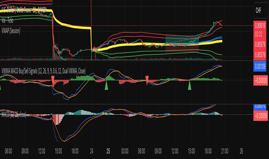 Description:This indicator combines a VWMA-based MACD with volume and trend filters to reduce false buy and sell signals.