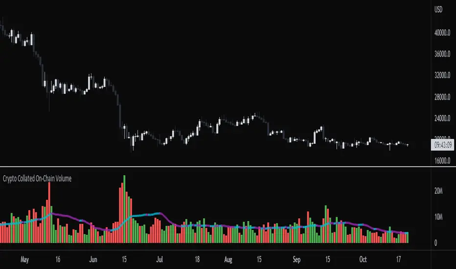 Crypto Collated On-Chain Volume looks specifically at the transaction volume from ETH and BTC on-chain By showing the control of