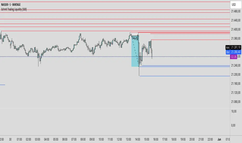 Schmit Trading Liquidity Marker automatically spots and labels open liquidity sweep levels by detecting classic stop-run patterns (Bull→Bear for highs, Bear→Bull for lows) across multiple timeframes. Lines are drawn exactly at the wick of the triggering candle and removed as soon as price “sweeps” through them, keeping your chart clean and focused on live levels only.
