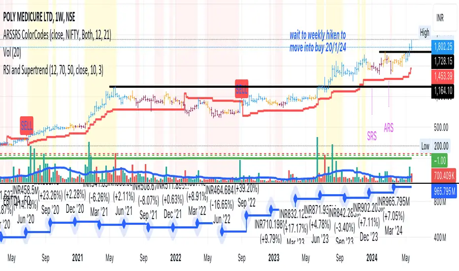- **Buy Signal**: Super Trend turns green, price closes above the Super Trend line, and RSI is below 70.