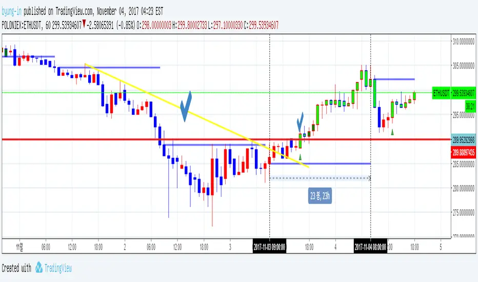 매수시점은 당일 즉 블루라인 범위내에서 고점을 캔들아래 삼각형 생기고 캔들색이 그린이나 형광색일때 돌파하면 매수입니다. 그리고 하향추세선이 위에있으면 참고하셔야합니다. 올라갈 공간이 있는지 확인해야합니다.