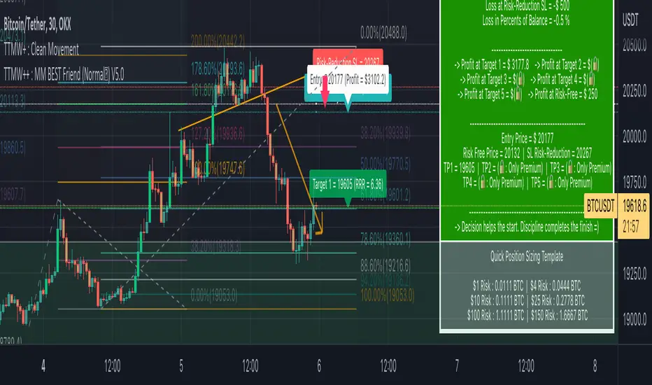 -> Money Management Best Friend (Premium) V5.0 is developed to be one of your best money management tools on tradingview. The purpose is to help your the money management of investing with many auto calculation parameters. The indicator provides many benefits including the price targets triggered alert and auto calculation on the dashboard calculating the information of trading such as the correct Position sizing to control the loss fixed at the planned number when your trade hit the Stoploss, Risk-Reward Ratio, and the profit at any targets.