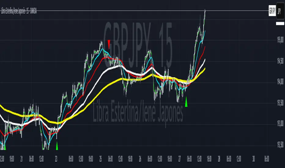 This indicator combines 5 configurable moving averages with up to 5 customizable trading strategies. The moving averages are plotted on the chart and the strategies generate buy and sell signals based on user-defined conditions.