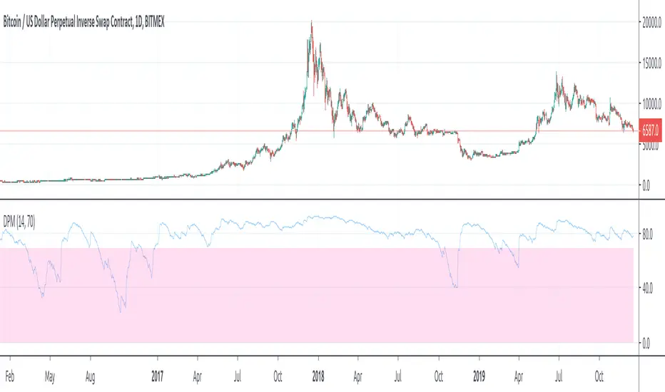 Price action based volatility. Used to determine profitable intraday trading periods. Lower values indicate unprofitable periods, high values indicate more profitable periods. To be used on XBTUSD 1 day chart.