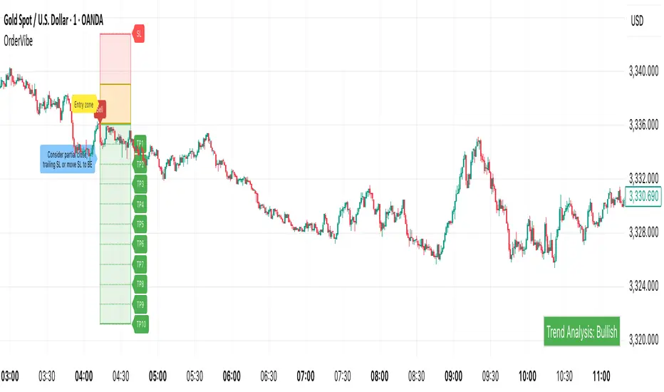 OrderVibe is a closed-source tool that visualizes market structure and volatility. It does not generate trade calls or manage orders. It draws zones/levels and optional alerts so traders can build their own process.
