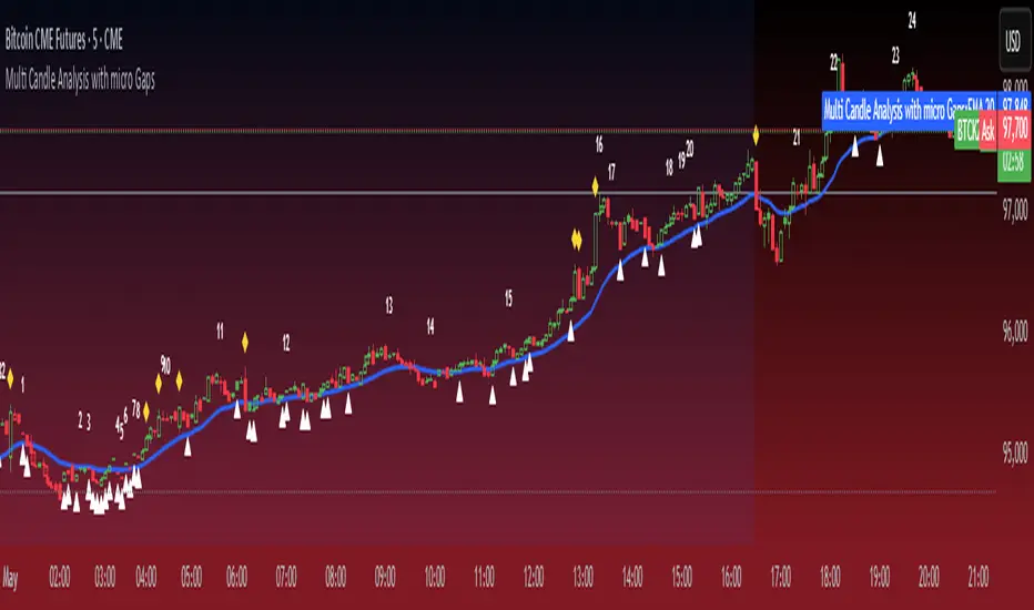 The Simple Micro Gap Indicator is a specialized momentum indicator designed to identify and analyze micro gaps between consecutive candlesticks in financial charts. Unlike traditional gap analysis that focuses on larger price gaps, this indicator specifically targets smaller, less noticeable spaces between candles.