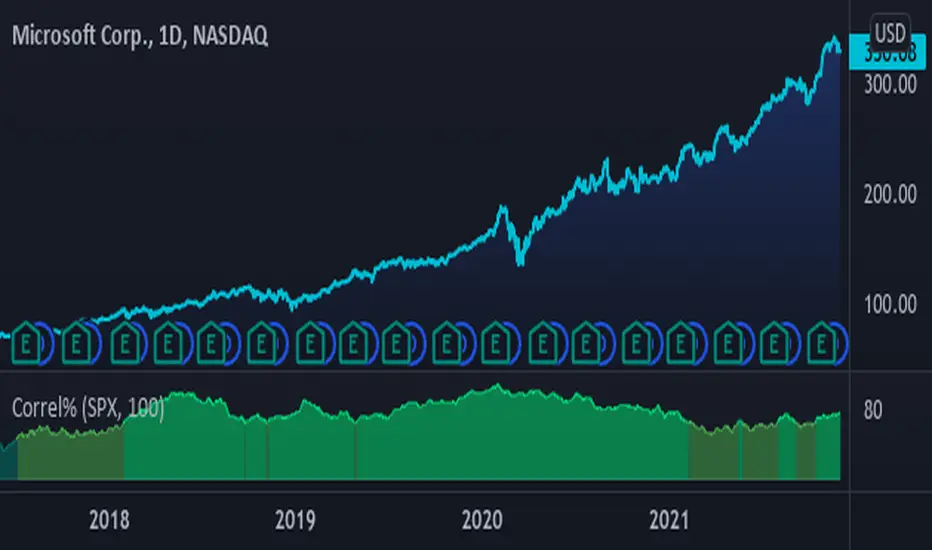 It simply calculates the percentage of moves in the same direction as the other market. So if MSFT moved in the same direction as SPX 80% of the time, then the indicator would show you a value of 80. Unlike correlation coefficient, you can calculate exactly how many of MSFT's bars moved in the same direction as SPX's bars. Everytime MSFT moves in the same direction as SPX, it is included in the percentage of positively correlated moves.