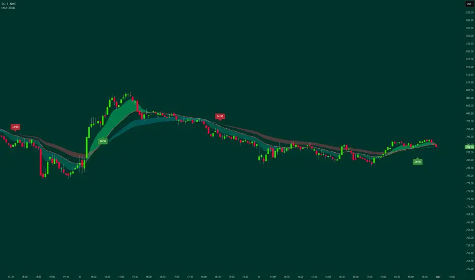 🔹 Dual Cloud System: Two independent EMA cloud pairs for multi-timeframe analysis