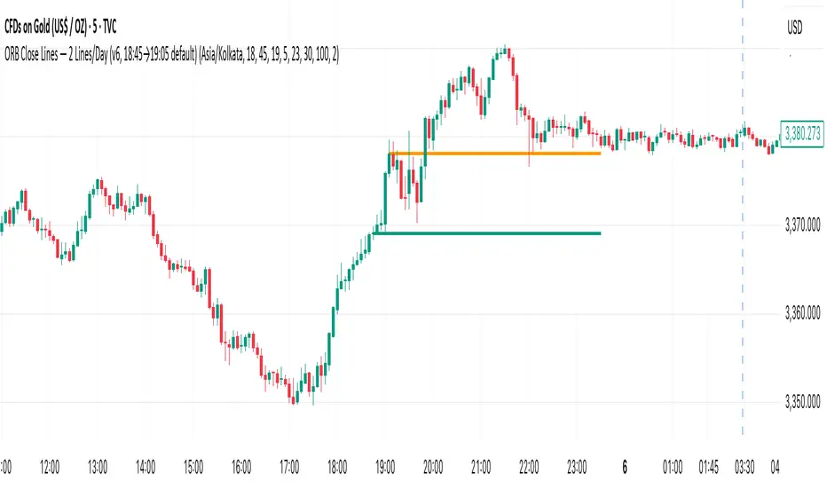 Helps track short intraday windows (e.g., 20-minute ORB around 18:45–19:05 IST) for evening breakout/trap setups. Ideal for gold, Bitcoin, or other 24/7 instruments.