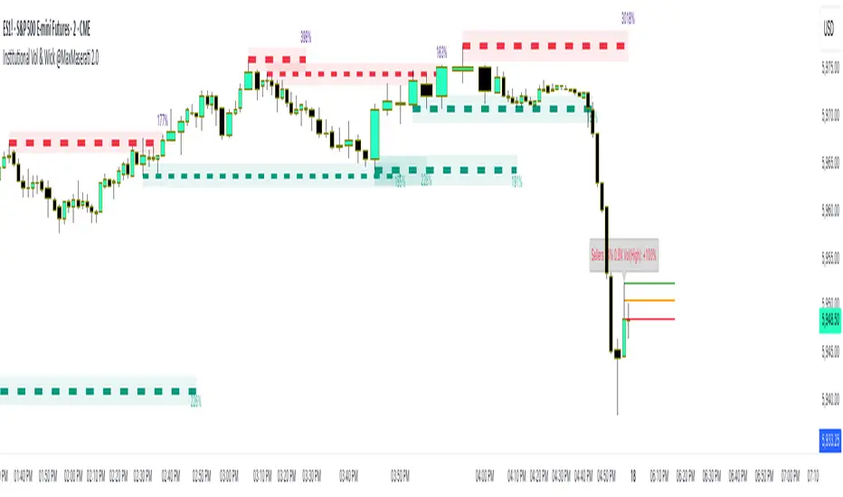 This advanced technical indicator combines institutional volume analysis with precise wick detection to reveal hidden market dynamics driving price action. Designed for serious traders who recognize that volume is the fuel behind meaningful price movements, this toolkit identifies key support/resistance zones created by significant institutional activity while simultaneously analyzing candlestick wicks to detect buyer/seller dominance.