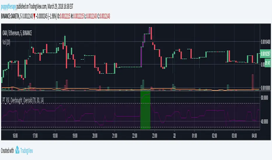 Oversold Purple Candlestics + Red area in RSI Chart