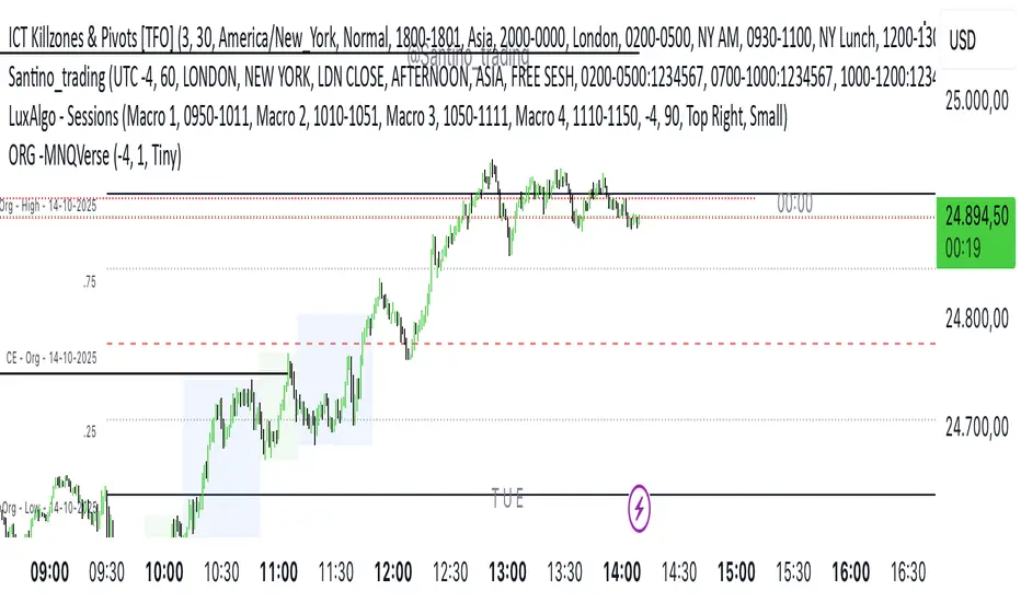 The "ORG -MNQVerse" is an essential tool for identifying the initial support and resistance levels of the day, allowing traders to anticipate potential price reaction points right from the start of the session.