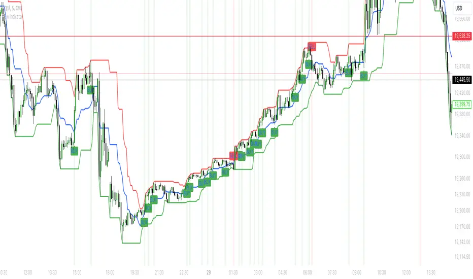 The Flow Indicator is designed to help you identify potential breakout and reversal points by analysing market momentum, volume, and dynamic price zones. Here's how to effectively use this indicator in your trading: