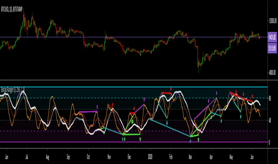This indicator has a Light(Low TF) and a Heavy(High TF) lines which are based on Stochastic Calculations.