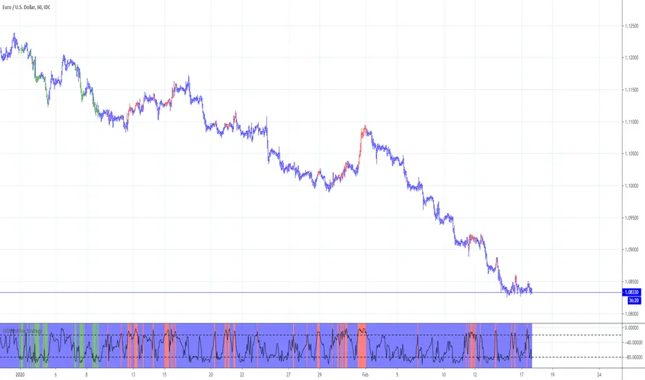 Verde indica che l'istogramma MACD giornaliero è superiore a 0 (la folla è rialzista) ma w% R mostra che momentaneamente esiste un prezzo inferiore (W% R è sotto il livello di oversold),