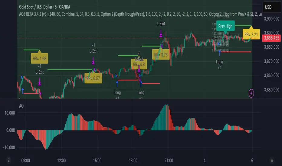 AO filter trend lead. capture impulse. entry on small timeframe corrective wave.