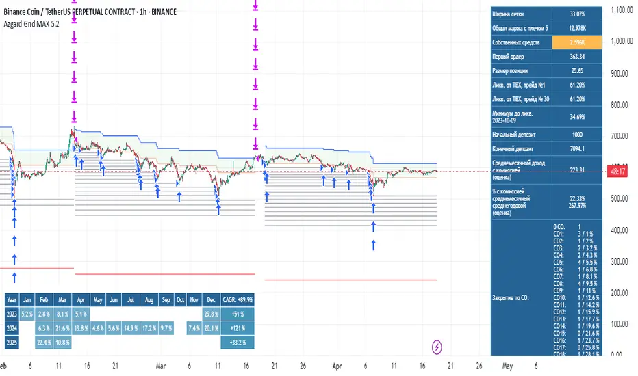 This script allows you to set up a grid bot using step buy orders, martingale and take profit and test its past performance and roughly see the financial results that depend on the initial order and leverage you set up.