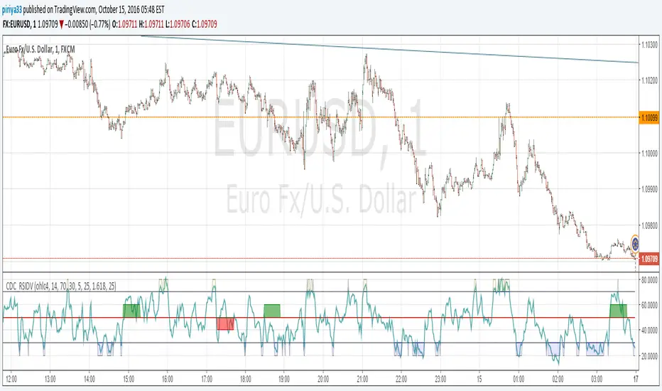 The indicator start on the bar where divergence is detected and persists for another 25 bars for easy regcognition.